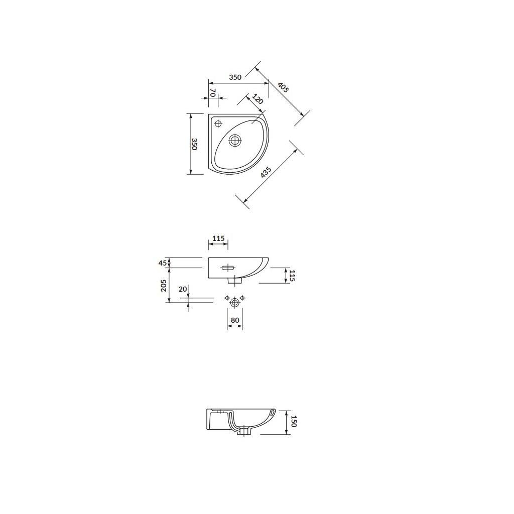 Cersanit Sigma, falra szerelhető sarokmosdó 35x35 cm, fehér, K11-0013