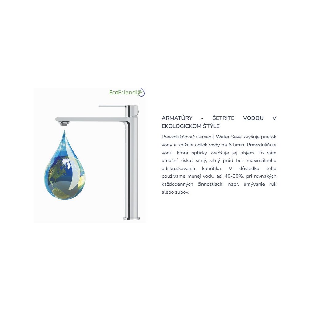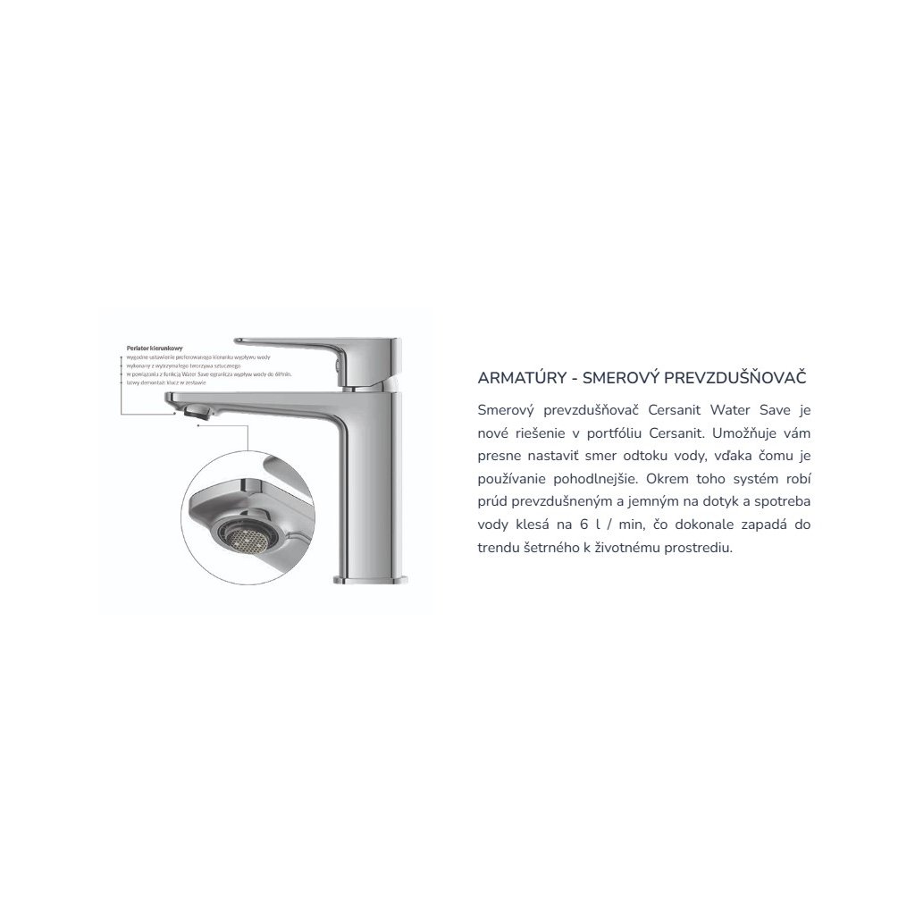 - Perlátor: Irányított (helyzetben állítható) szilikon levegőztető Cersanit Water Save