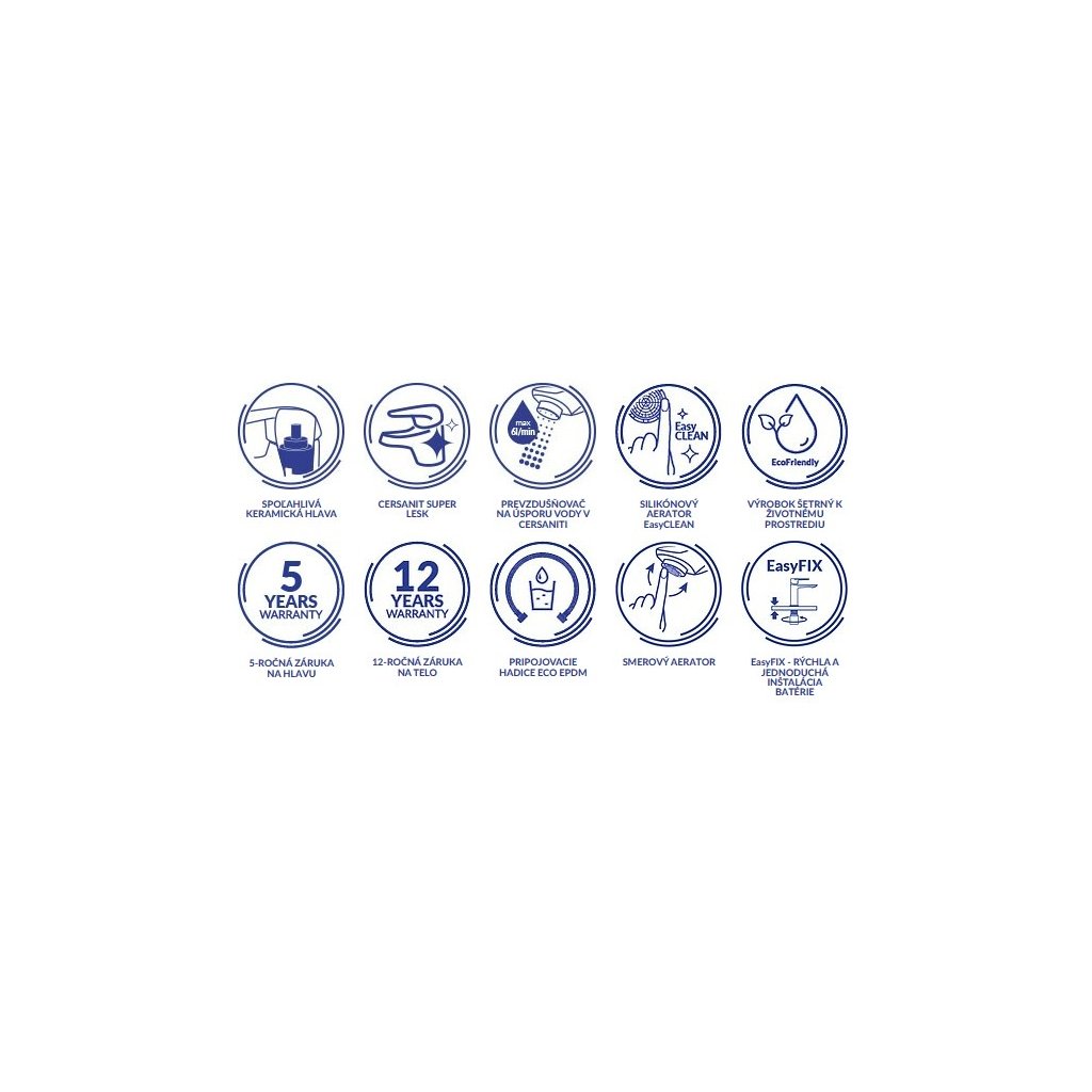 - Krómozás típusa: Cersanit Super Gloss - a nikkelréteg vastagsága 8-12μm és a krómréteg 0,25-0,3μm a Cersanit akkumulátorokra felhordva, hosszú évek használat után is magas felületi minőséget garantál.