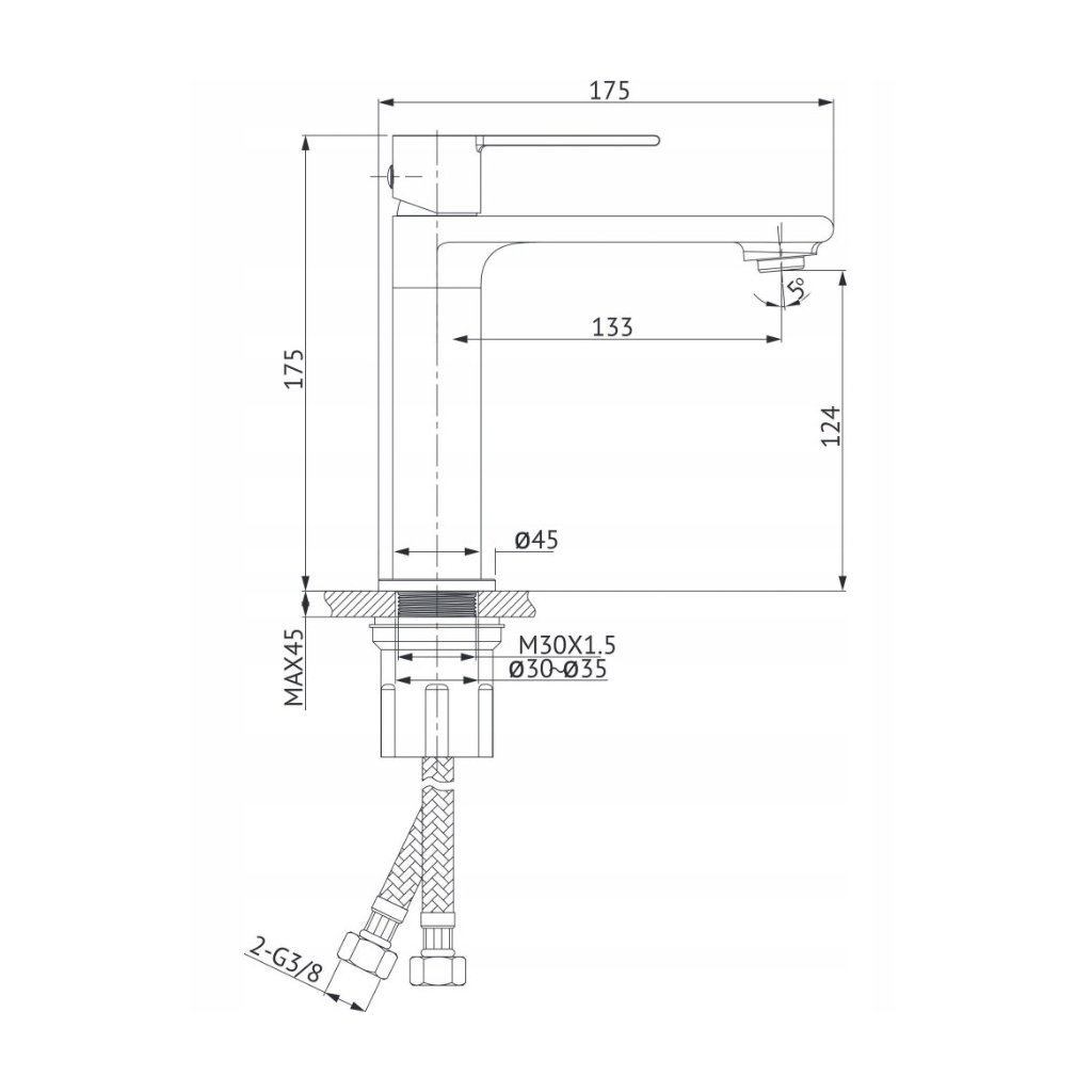 - Csatlakozó tömlők: Rugalmas csatlakozótömlők G 3/8 hüvelyk, hossza 600 mm, ECO EPDM, WRAS minősítés