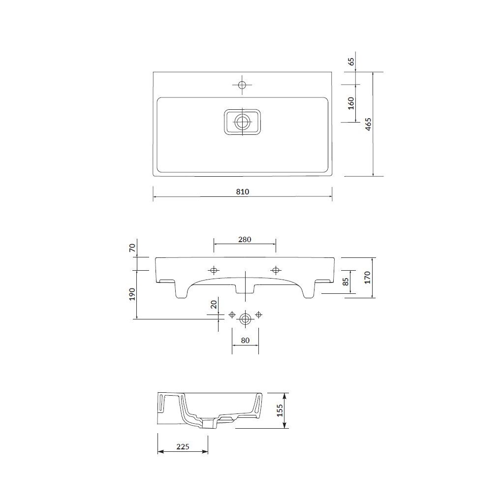 Cersanit VIRGO kerámia mosdó, süllyesztett, 80x46 cm, K118-002