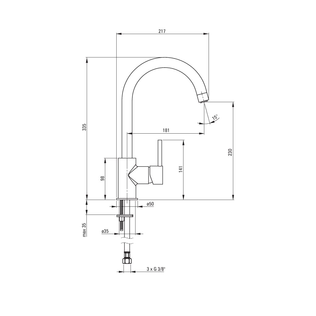 - Típus: alacsony nyomású mosogató csaptelep fűtőtesthez "U" alakú karral