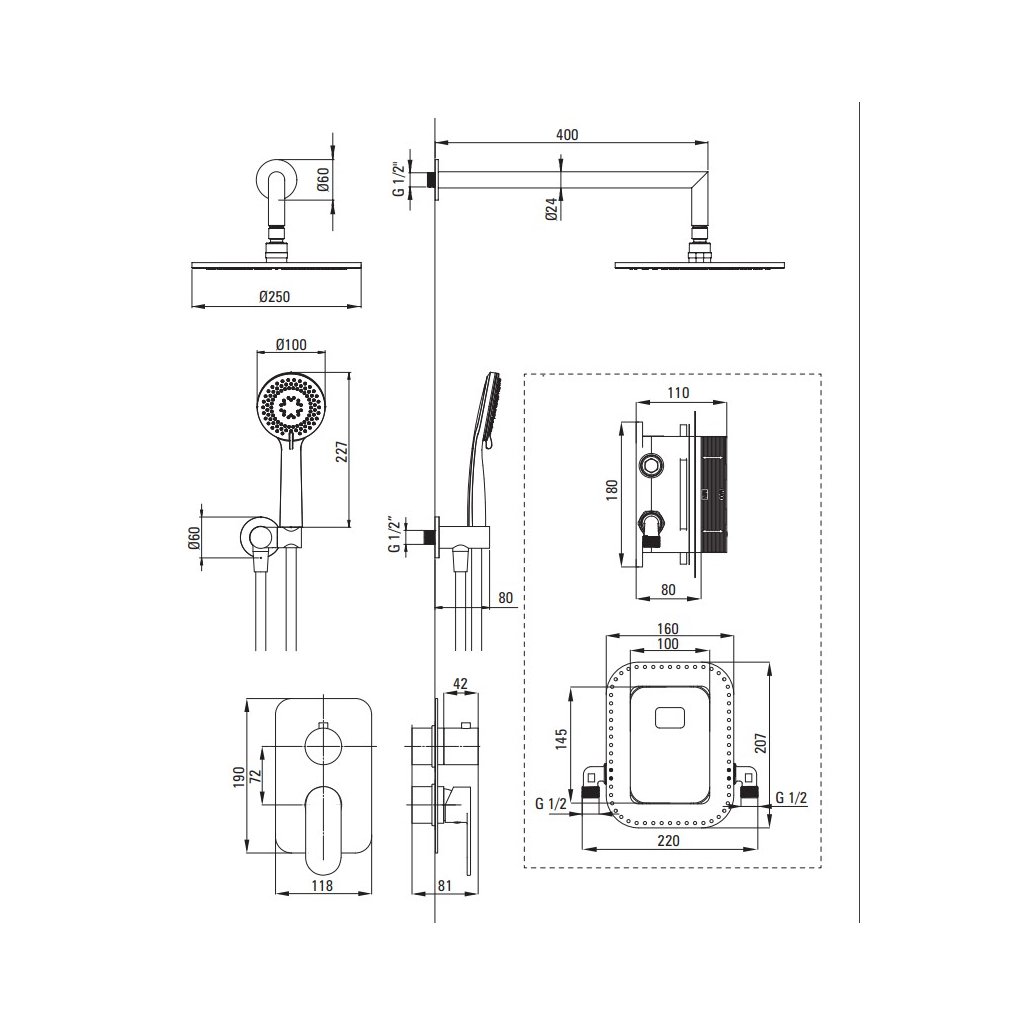- Az esőzuhany átmérője [mm]: 250