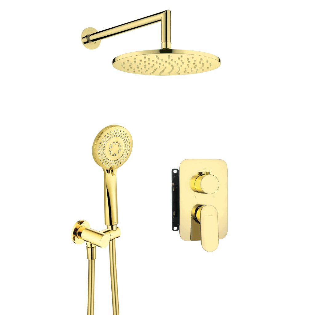 Deante Alpinia, rejtett zuhany szett fej- és kézizuhannyal, karos csaptelep dobozos rögzítő rendszerrel BOX, arany fényes, BXYZZGAM