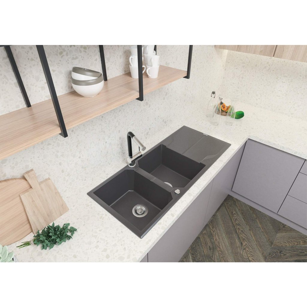 Deante Andante gránit mosogató 116x50cm, 2 kamrás, antracit, ZQN_T213
