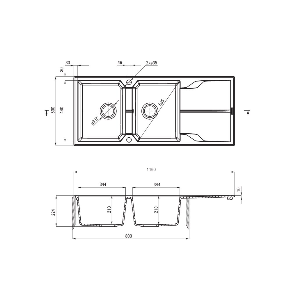 - Mosogató méretei: 1160 x 500 x 224 mm