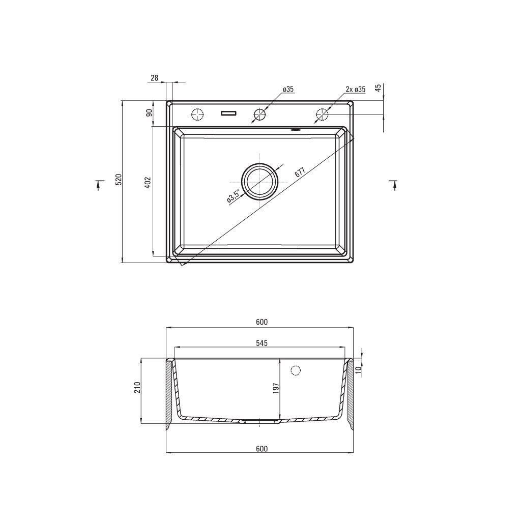 - Mosogató méretei: 600 x 520 x 210 mm