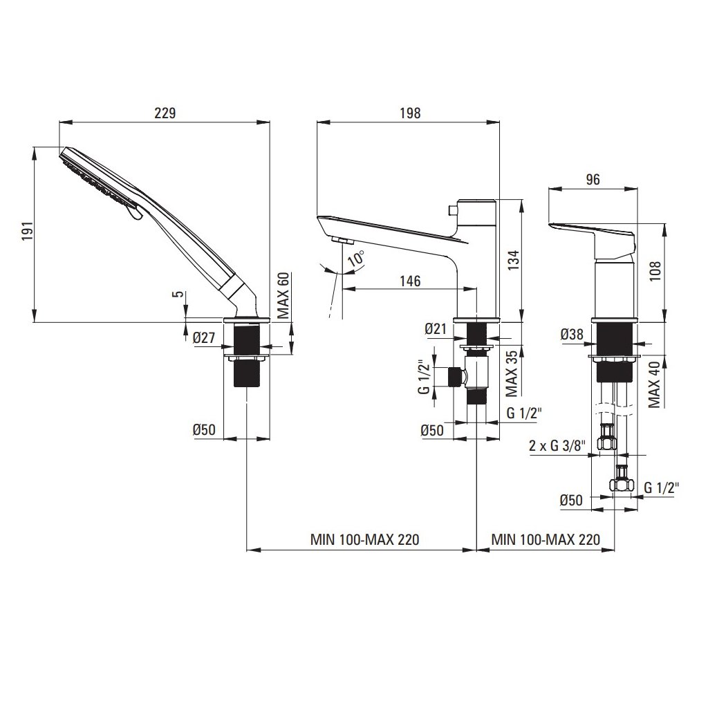 - A kézizuhanyfej funkcióinak száma: 3