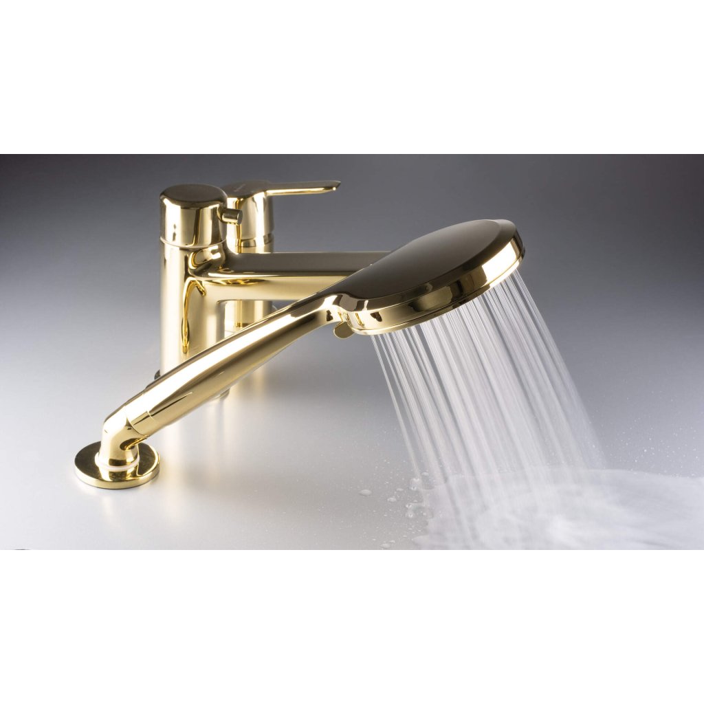 Az Arnika 3 lyukú kádcsaptelep az elegancia és a tartósság kiváló kombinációja. Tartós sárgarézből készült és fényes arany színű kivitelben tökéletes kiegészítője bármilyen fürdőszobabelsőnek. Egyediségét egy praktikus kerámia kapcsoló biztosítja, amely lehetővé teszi a vízáramlás könnyű átkapcsolását a kifolyó és a kézizuhany között.
