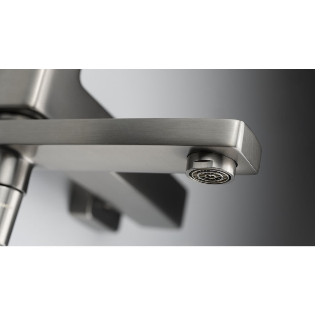 A Blur kádcsaptelep összecsukható kifolyóval rendelkezik, amely funkciókapcsolóként is szolgál, így könnyedén válthat a víz áramlása a kifolyó és a zuhanyfej között. Az összecsukható kialakításnak köszönhetően összecsukva több helyünk van fürdés közben, ami nagyobb használati kényelmet jelent. A csaptelep teste tartós sárgarézből készült, ami biztosítja a tartósságát és a korrózióállóságát. A csaptelep az eredeti titán színben készült, ami egyedi karaktert kölcsönöz neki.