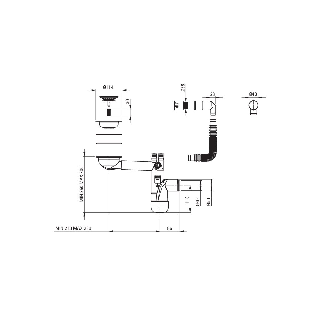 - Szifon típusa: kézi dugó, helytakarékos szifon (helytakarékos)