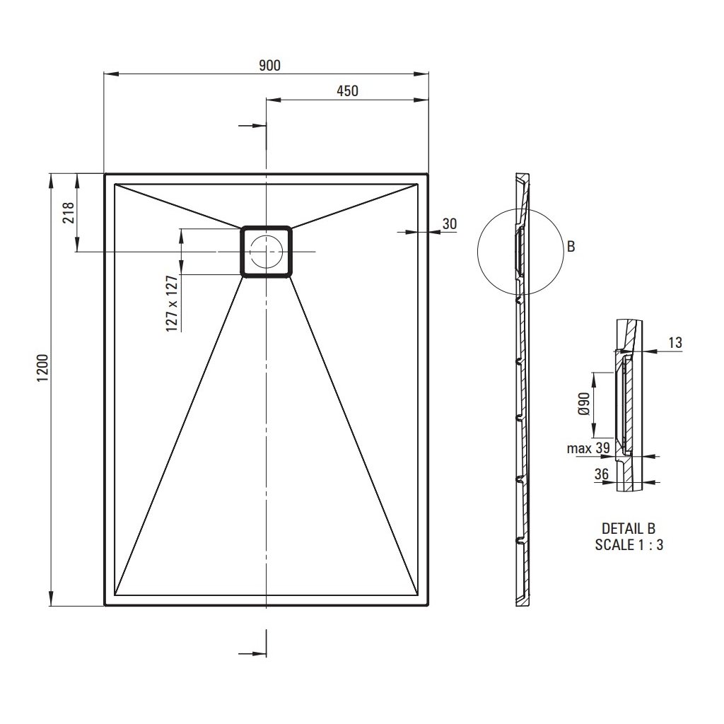 - Típus: négyszögletes gránit zuhanytálca