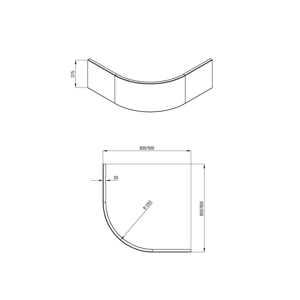 - Típus: előlap negyedkör alakú akriltálcához
