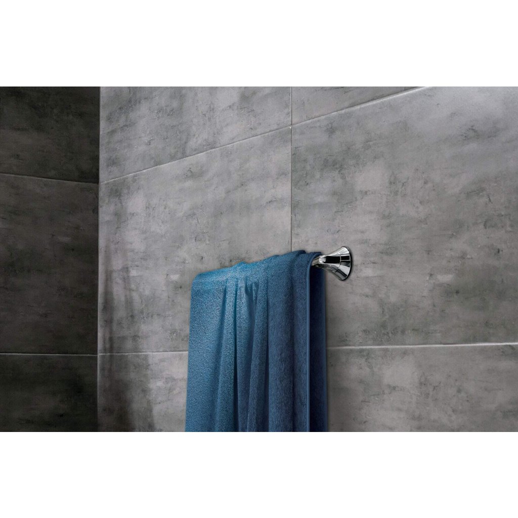a törülközőtartó tapadókorongra van felszerelve, a tapadó erőknek köszönhetően, további szerszámok használata nélkül. Az akasztó alumíniumból készült és fényes króm bevonattal van ellátva. Ideális klasszikus és modern fürdőszobákba egyaránt. A termék bármikor eltávolítható, és egy másik, megfelelően előkészített felületen újra felhasználható.