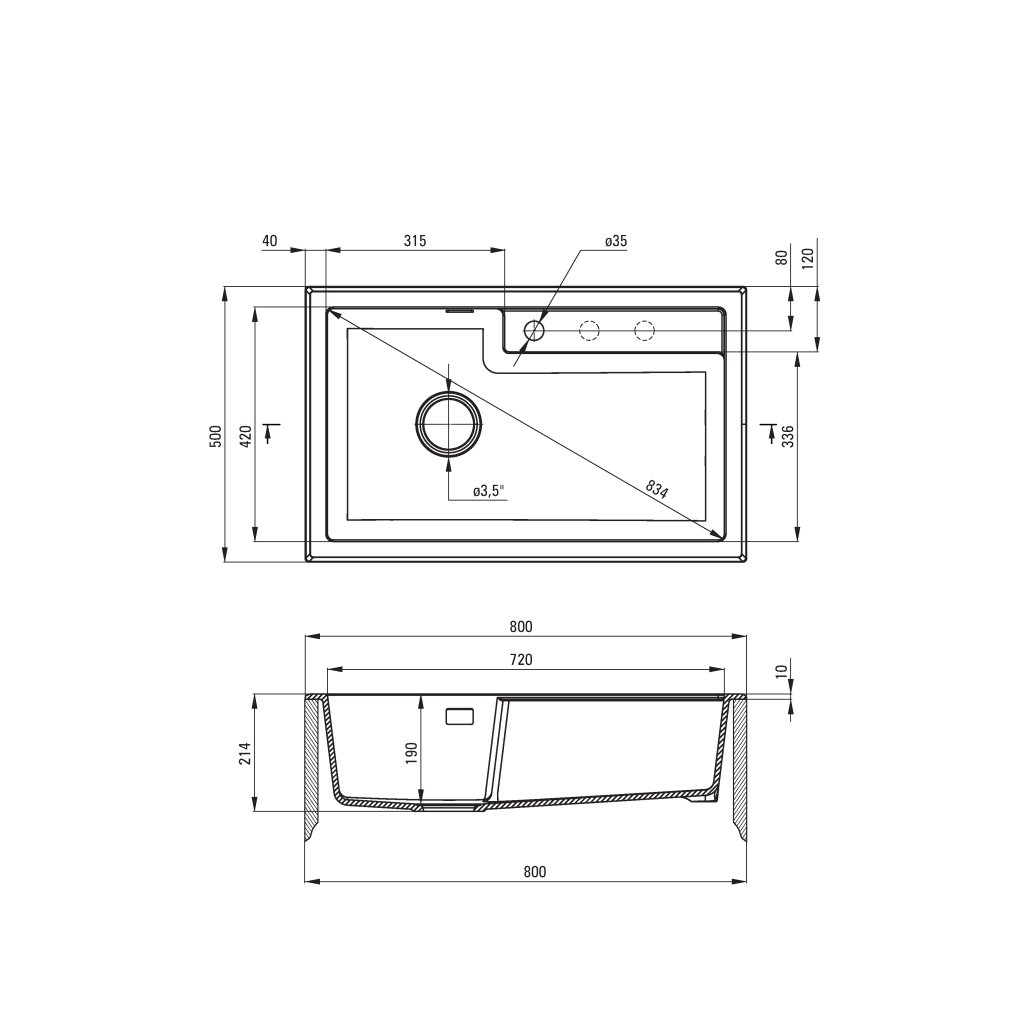 Deante Eridan, gránit munkalap mosogató 800x500x214 mm, 3,5" + helytakarékos szifon, 1 kamrás, szürke, ZQE_S10B