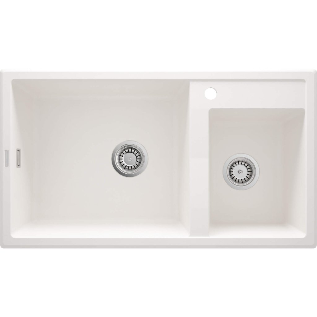 Deante Eridan, gránit munkalap mosogató 880x500x200 mm, 3,5" + helytakarékos szifon, 2 kamrás, fehér, ZQE_A20B