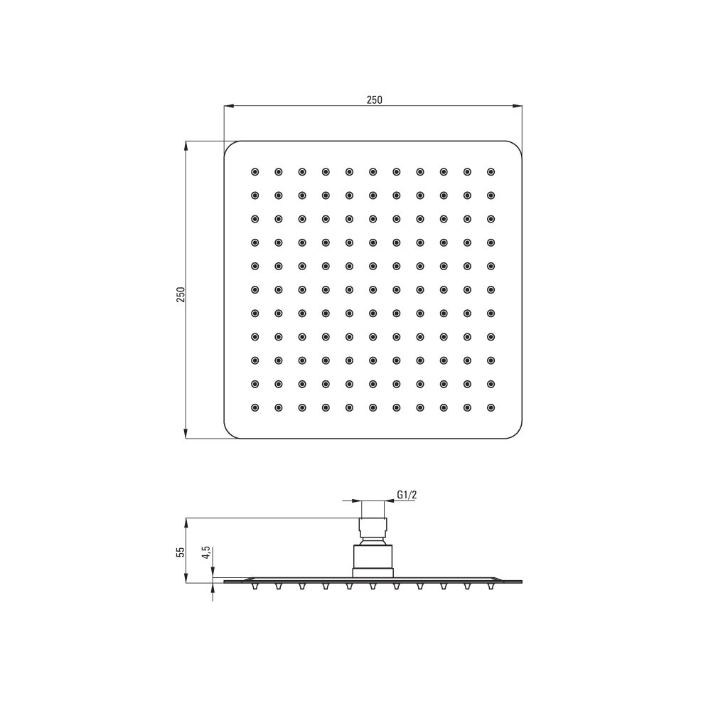 Deante Floks, rozsdamentes acél esőfej 250x250 mm négyzet, króm, NAC_002K
