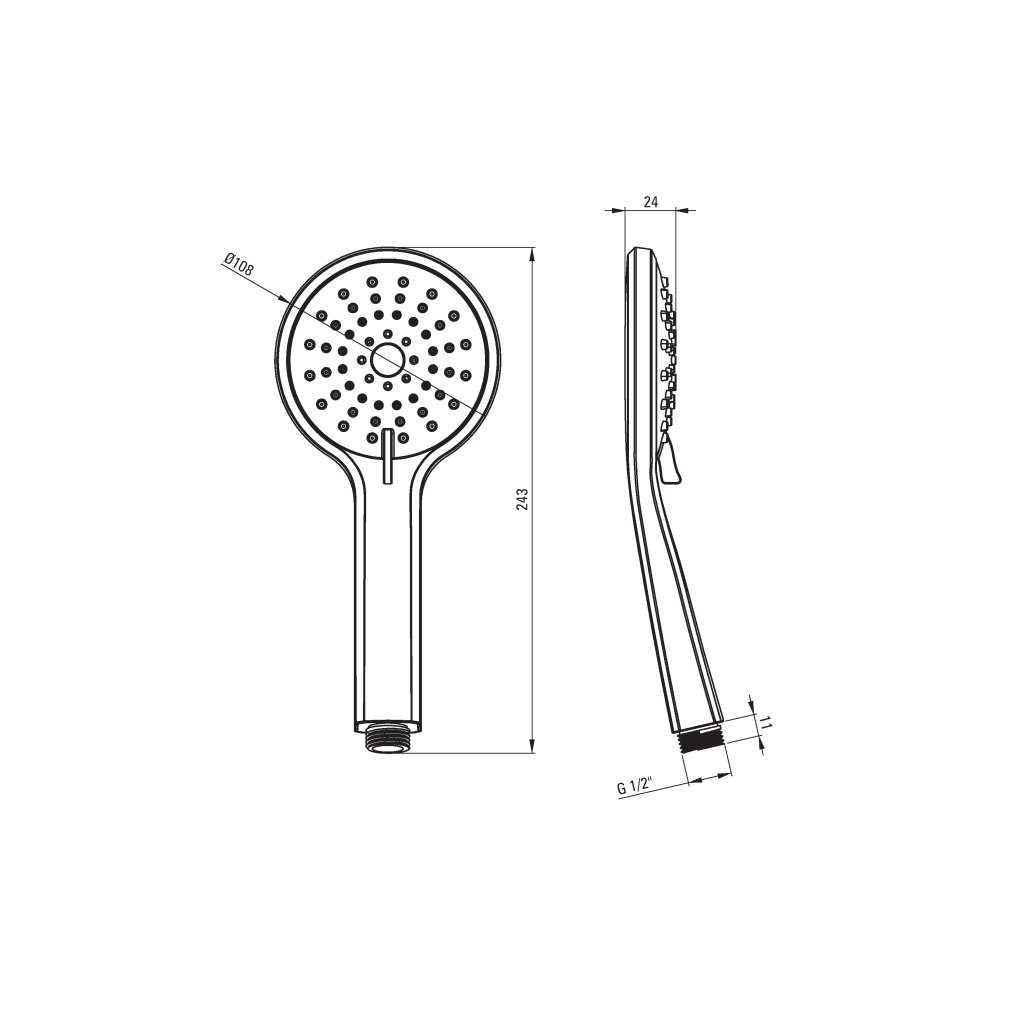 - Típus: kerek kézizuhanyfej 3 funkciós