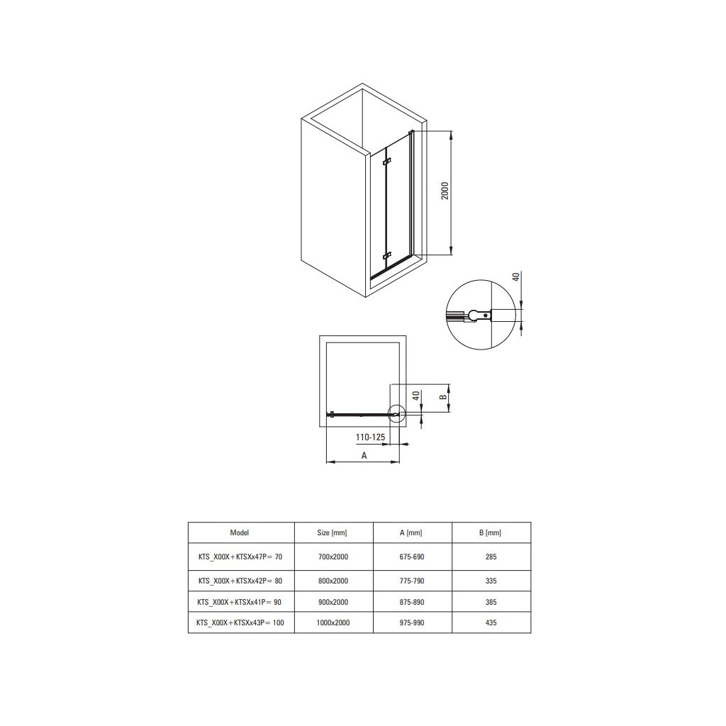 Deante Kerria Plus, nyitható zuhanyajtó 80x200cm, 6mm átlátszó üveg ActiveCoverrel, fekete profil, KTSXN42P