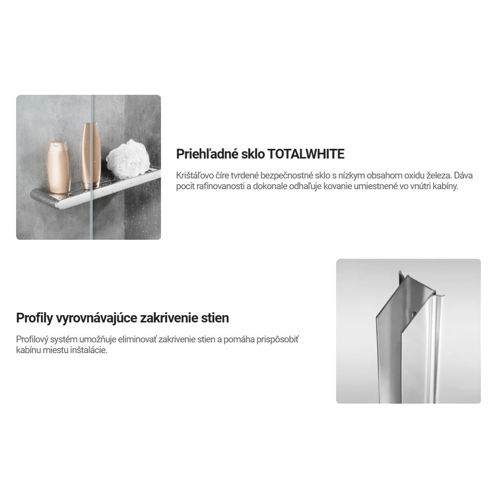 A Kerria Plus tolóajtók népszerű rendszer a zuhanyzókban. Ez a modell ideális kis és nagy fürdőszobákba egyaránt. Az ajtó átlátszó Total-White edzett üvegből készült és hidrofób bevonattal van bevonva Active - Cover. Ez egy megfordítható termék (bal vagy jobb oldalra szerelhető) és a zuhanytálcára vagy közvetlenül a padlóra szerelhető.