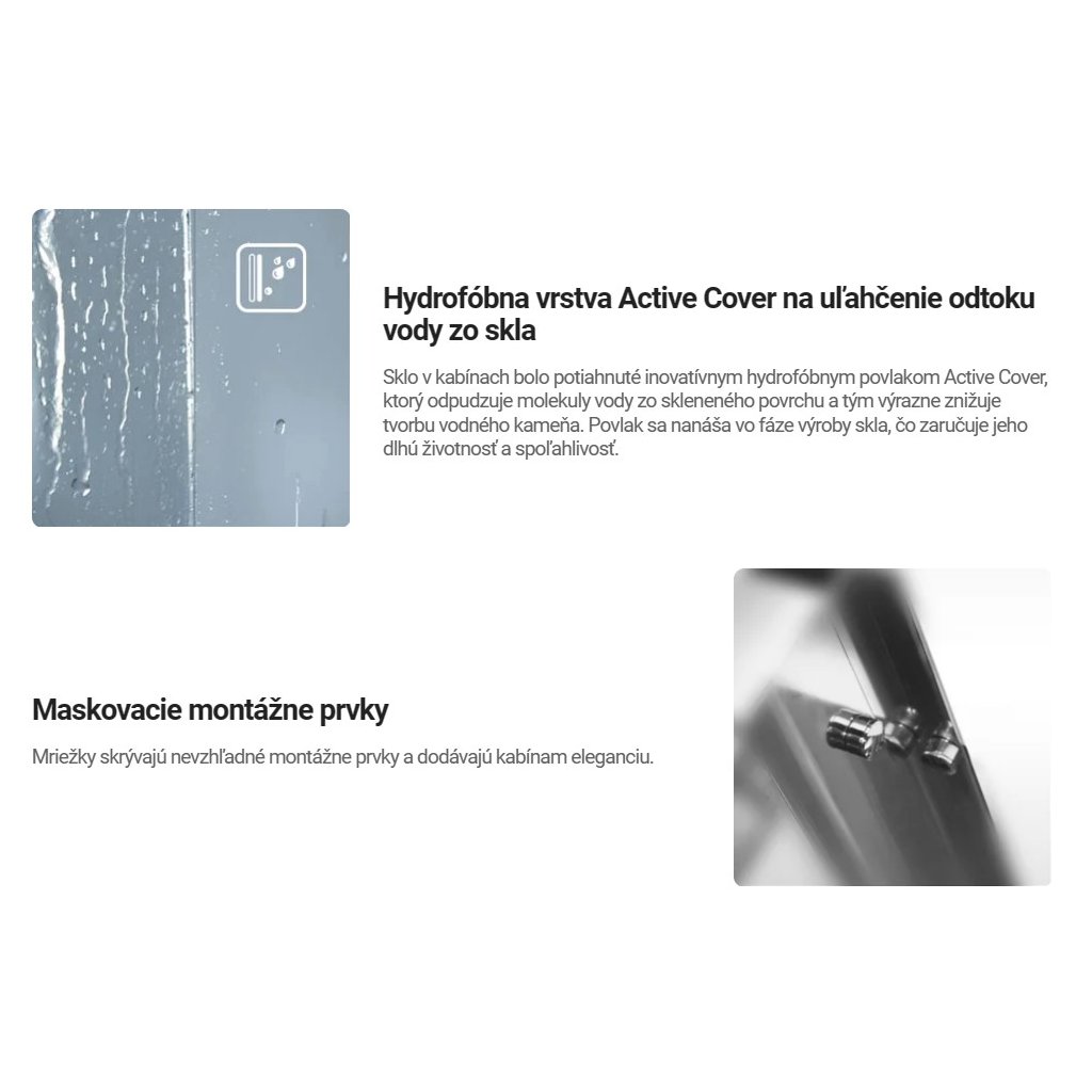 A Kerria Plus tolóajtók népszerű rendszer a zuhanyzókban. Ez a modell ideális kis és nagy fürdőszobákba egyaránt. Az ajtó átlátszó Total-White edzett üvegből készült és hidrofób bevonattal van bevonva Active - Cover. Ez egy megfordítható termék (bal vagy jobb oldalra szerelhető) és a zuhanytálcára vagy közvetlenül a padlóra szerelhető. A fekete felületnek köszönhetően a zuhanykabin nagyon elegáns megjelenésű.