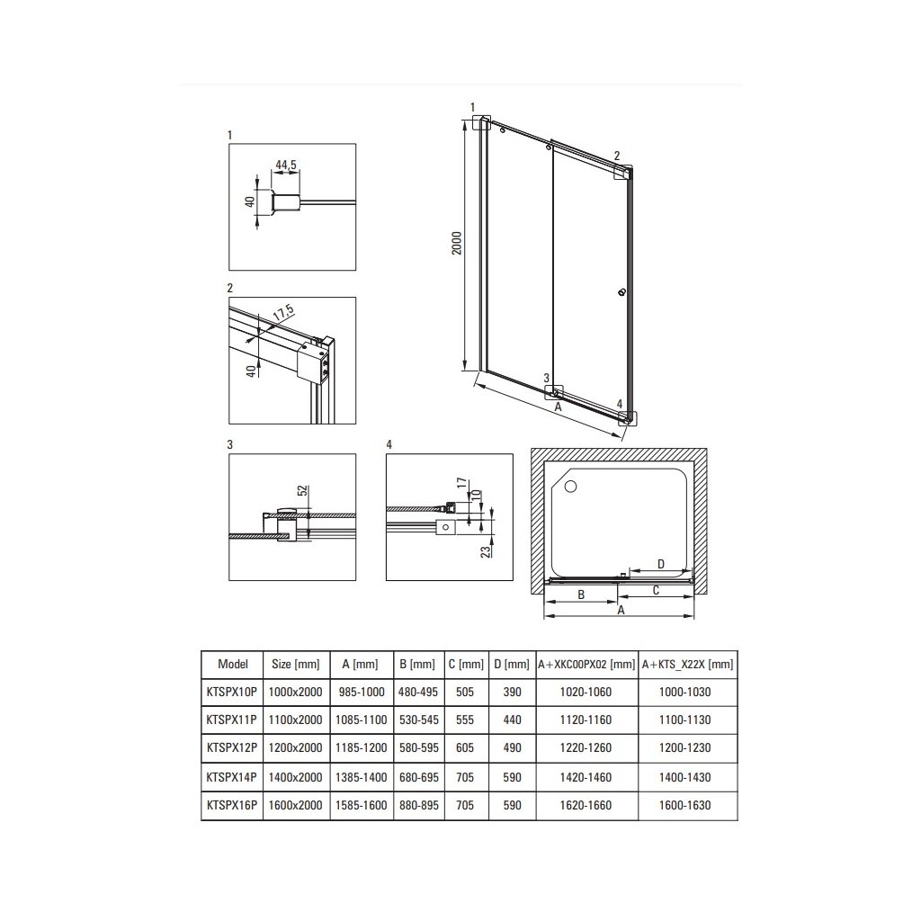 Deante Kerria Plus, tolózuhanyajtó 140x200 cm, 6mm átlátszó üveg, króm profil, DEA-KTSP014P