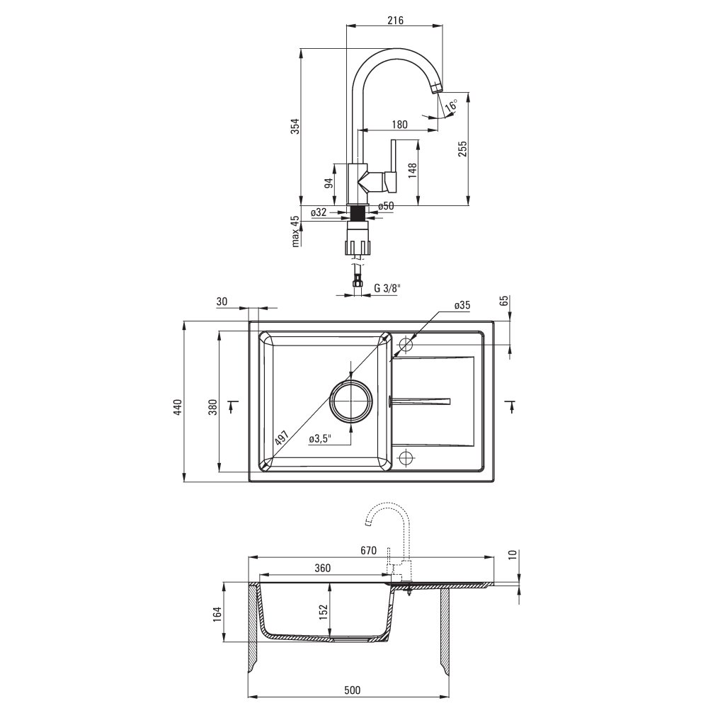 - Típus: 1-kamrás mosogató felül + mosogató csaptelep