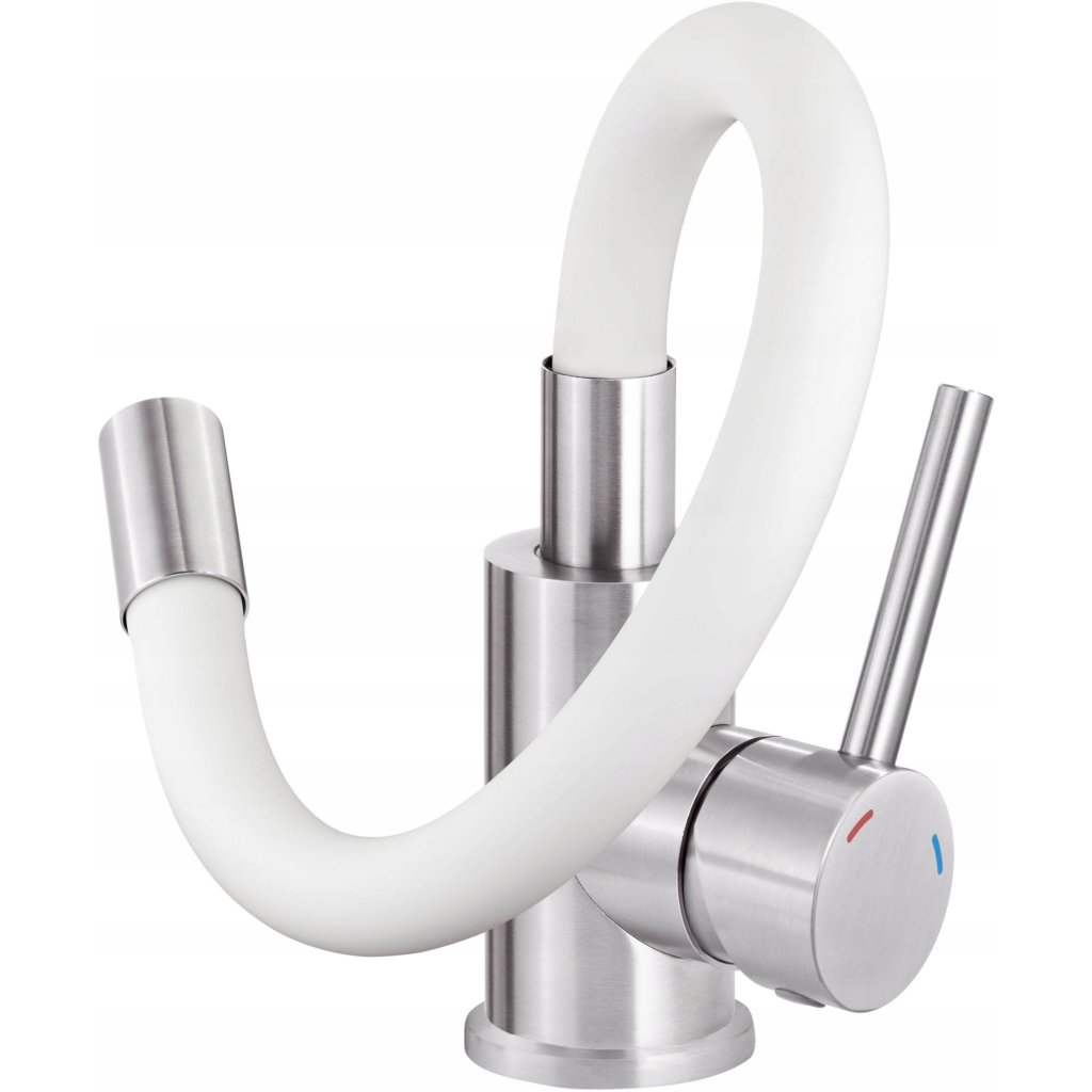 Deante Luno, mosogató csaptelep rugalmas karral, acél-fehér, BOC_W720