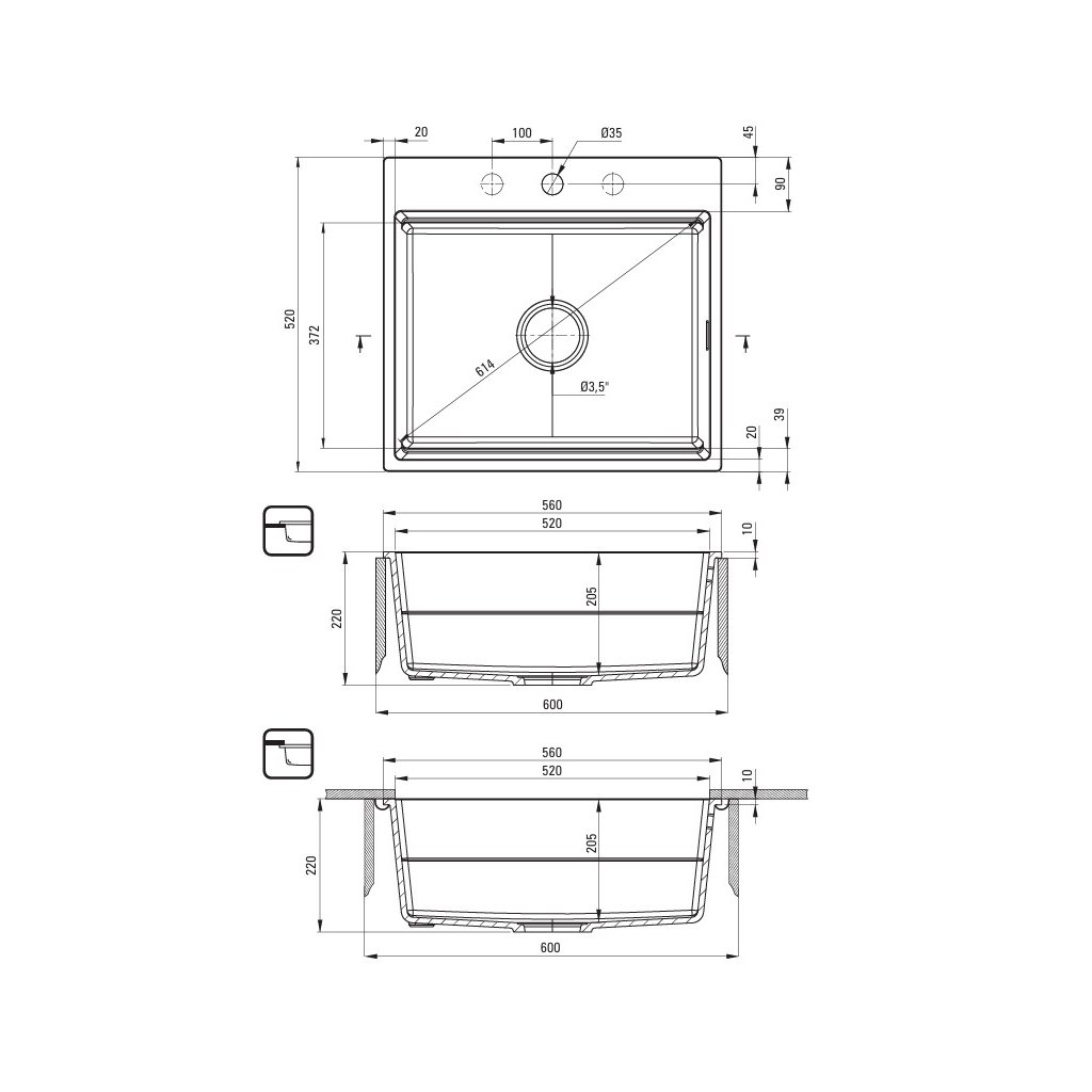 Deante Magnetic, 1 kamrás gránit mosogató 560x520x220mm, fekete matt, DEA-ZRM_N10A
