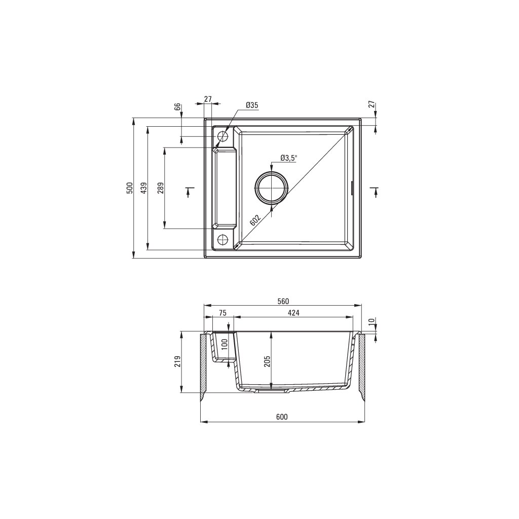 Deante Magnetic, gránit munkalap mosogató 560x500x219 mm, 3,5" + helytakarékos szifon, 1 kamrás, antracit metál, ZRM_T103