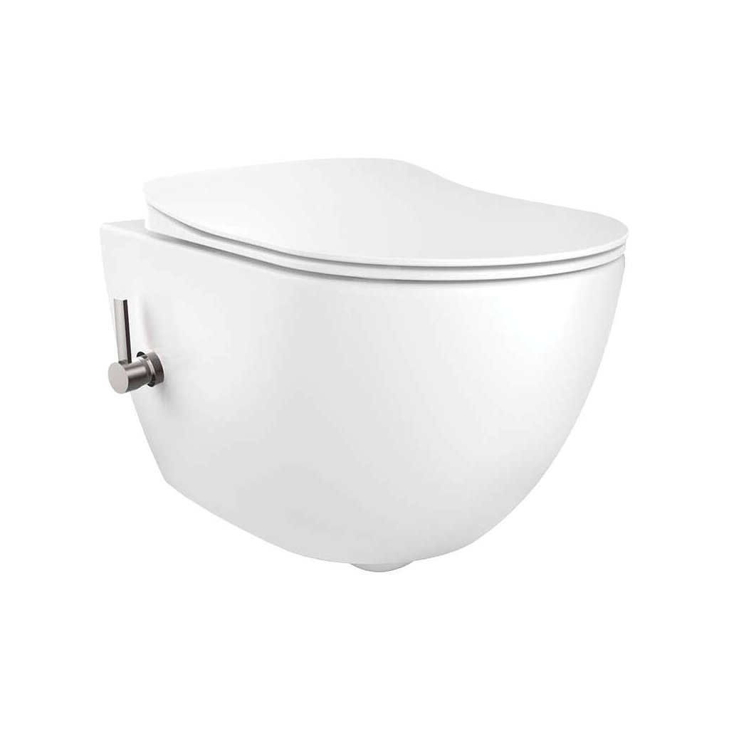 A bidé funkcióval ellátott WC-csésze maximális higiéniát és jó közérzetet biztosít. Kiváló minőségű fényes kerámiából készült. A tálnak nincs nyakörve, amely alatt a baktériumok és a szennyeződések felhalmozódhatnak, így könnyen tisztán tartható. A készlet tartalmaz egy lassan záródó Slim ülést és a szükséges rögzítőkészletet.