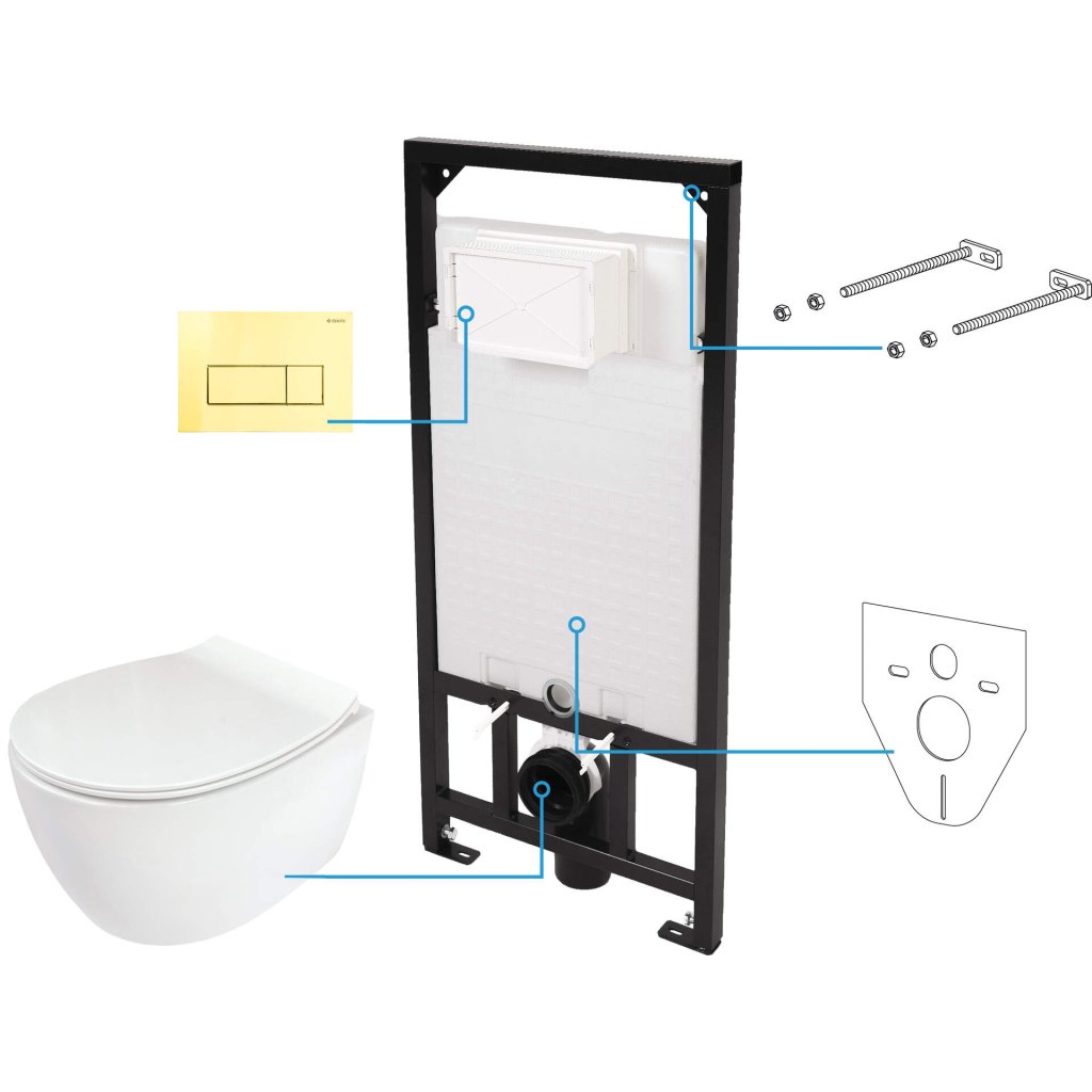 Deante Silia, 6 az 1-ben falra szerelhető WC készlet, arany-fehér, DEA-CDLZ6ZPW
