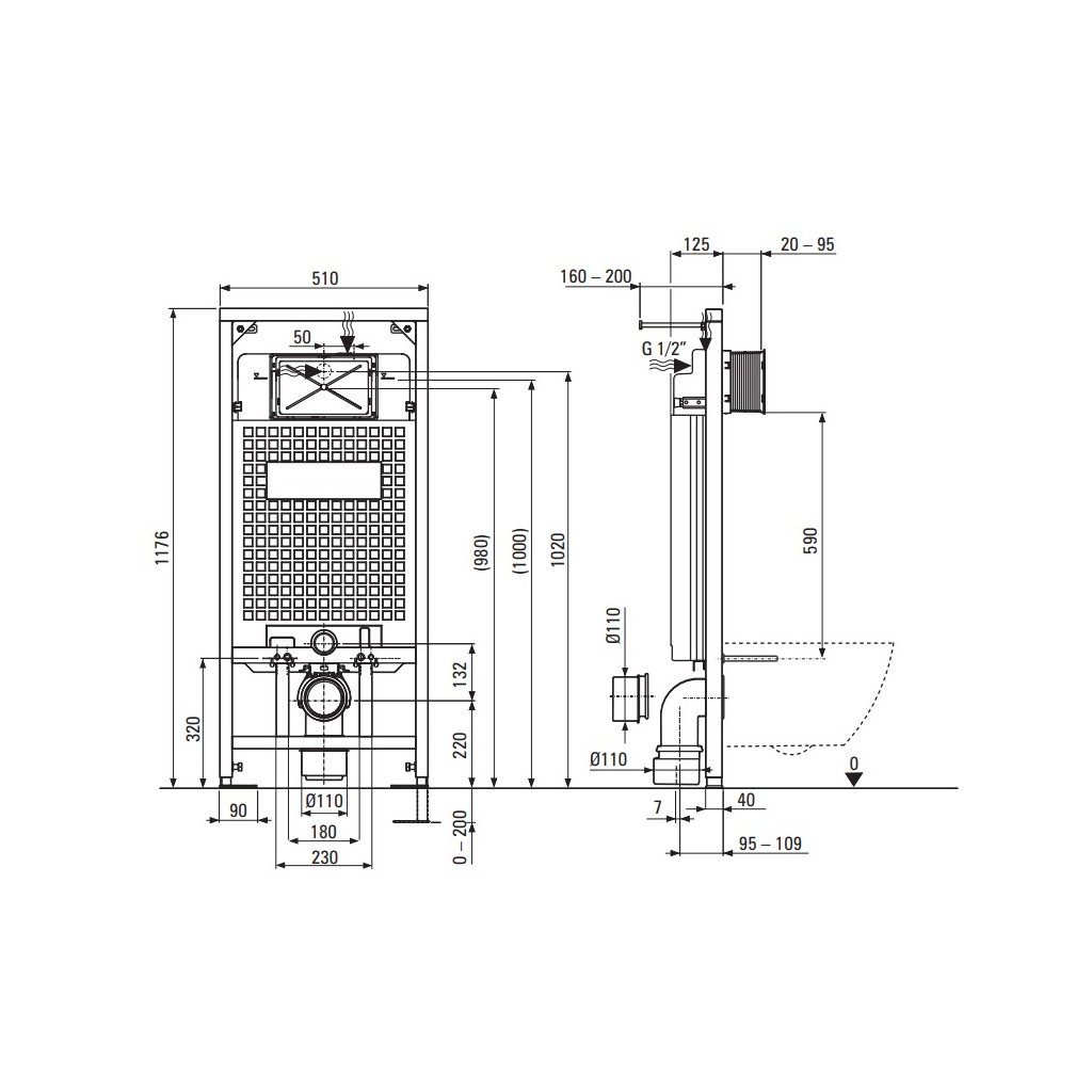 - Dupla gomb az öblítéshez használt víz mennyiségének beállításához
