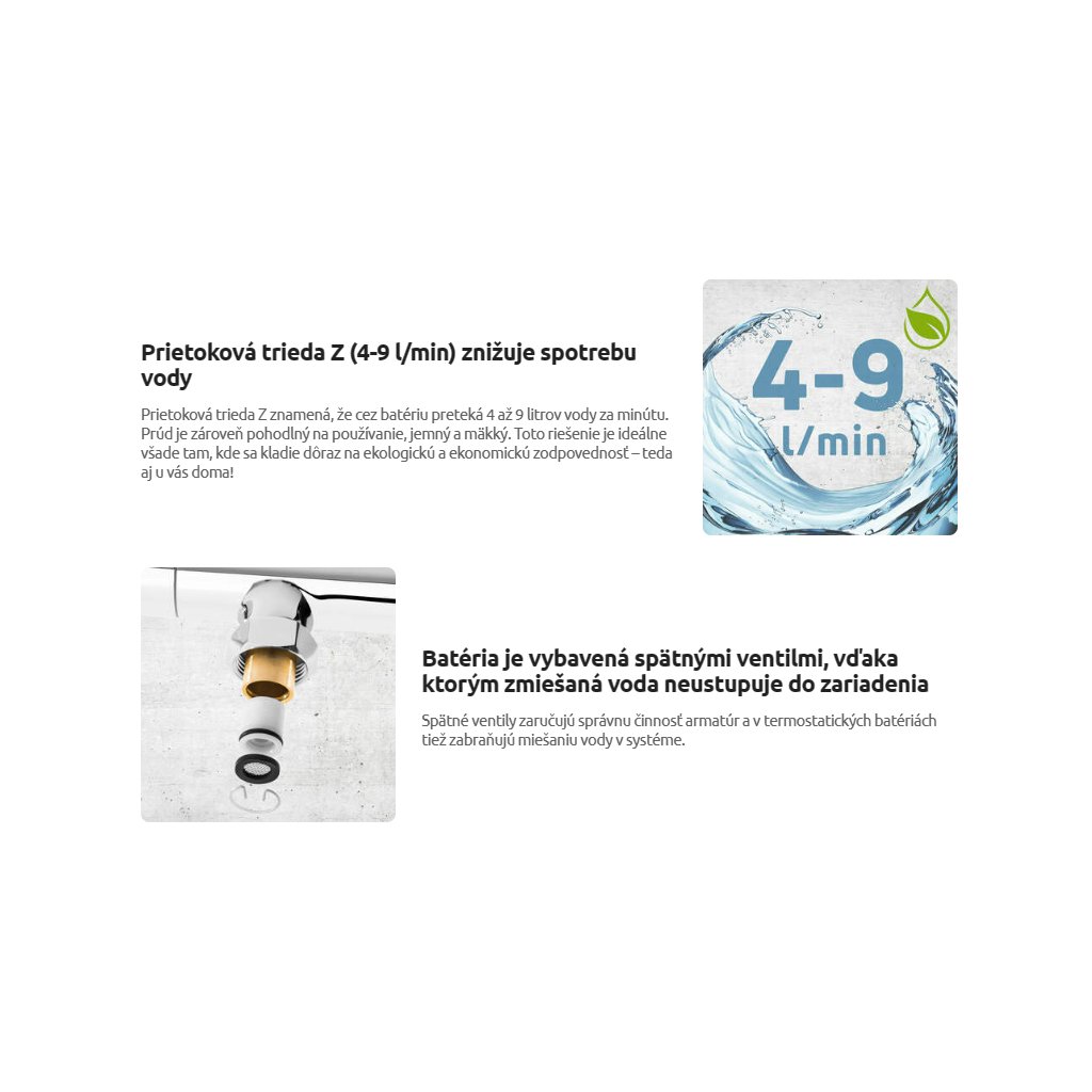 A Z áramlási osztály (4-9 l/perc) csökkenti a vízfogyasztást