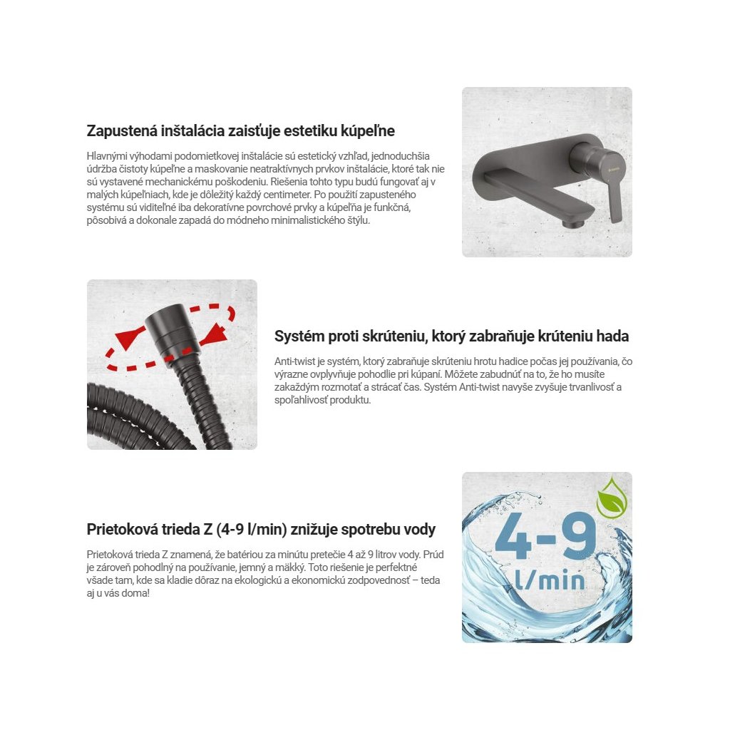 Az Anti-wist egy olyan rendszer, amely megakadályozza, hogy a tömlő hegye használat közben elcsavarjon, ami jelentősen befolyásolja a fürdés kényelmét. Felejtsd el, hogy minden alkalommal ki kell fejtened, és időt pazarolnod kell. Ezenkívül az Anti-Twist rendszer növeli a termék tartósságát és megbízhatóságát.