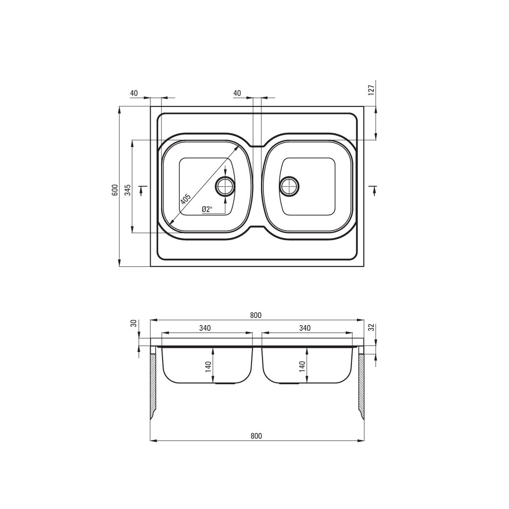- Típus: rozsdamentes acél 2kamrás munkalapos mosogató + szifon