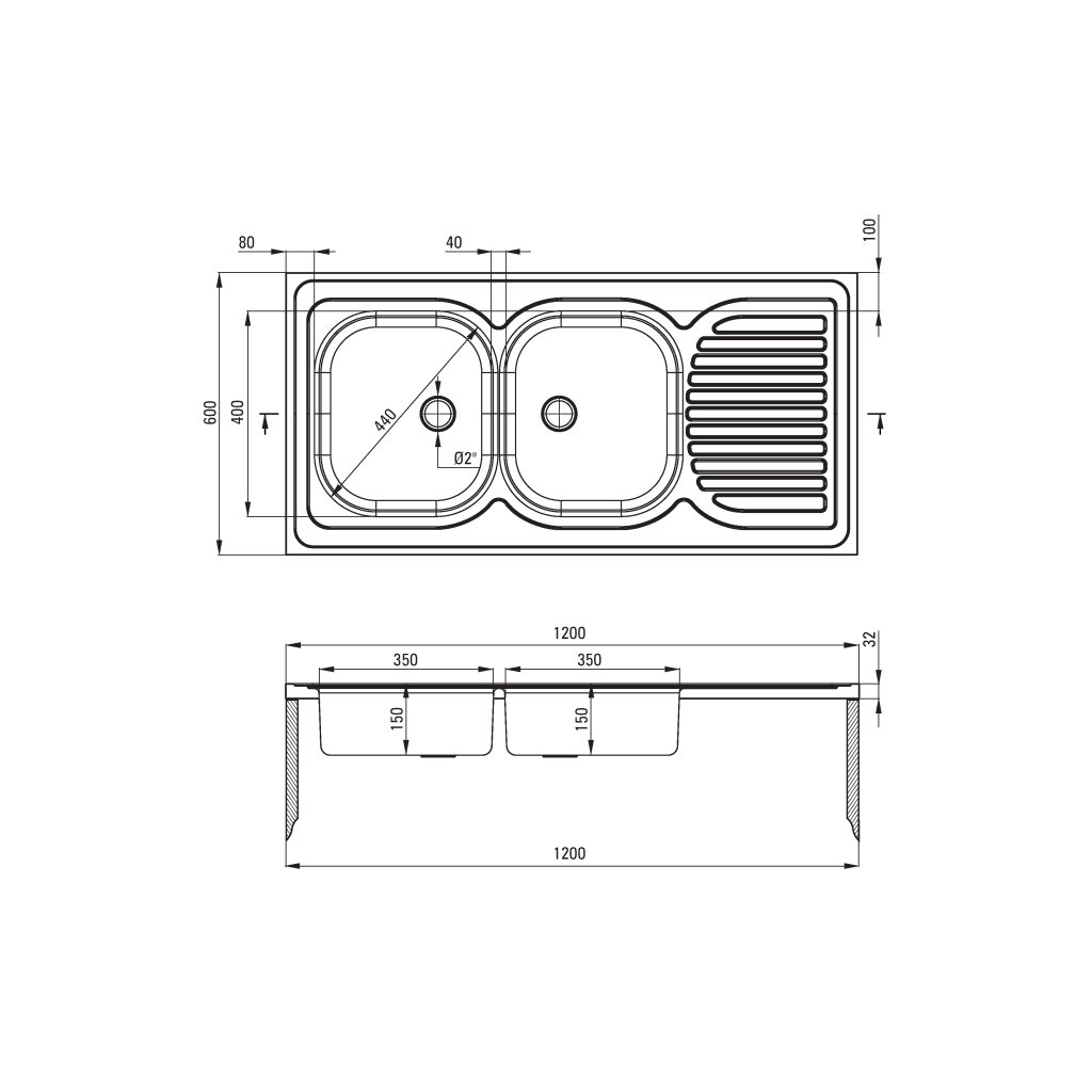 - Típus: rozsdamentes acél 2 kamrás munkalapos mosogató + szifon