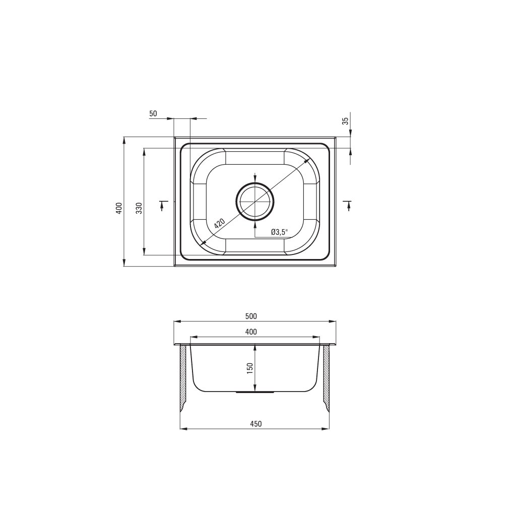Deante Techno, rozsdamentes acél munkalap mosogató 1 kamrás B/O 500x400x150 3,5'' + szifon, dekor mintás, ZEU_310A