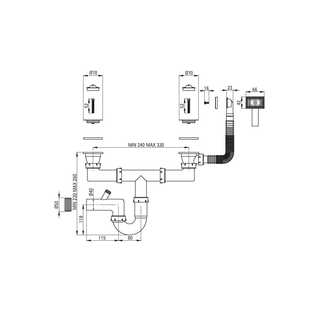 A Techno kétkamrás mosogató acélból készült. Az acél természetes fertőtlenítő tulajdonságokkal rendelkezik, és tökéletesen sima felülete könnyen tisztán tartható. Ezenkívül az anyag karcálló és szagtalan. A készlet tartalmaz egy kézi dugót is.