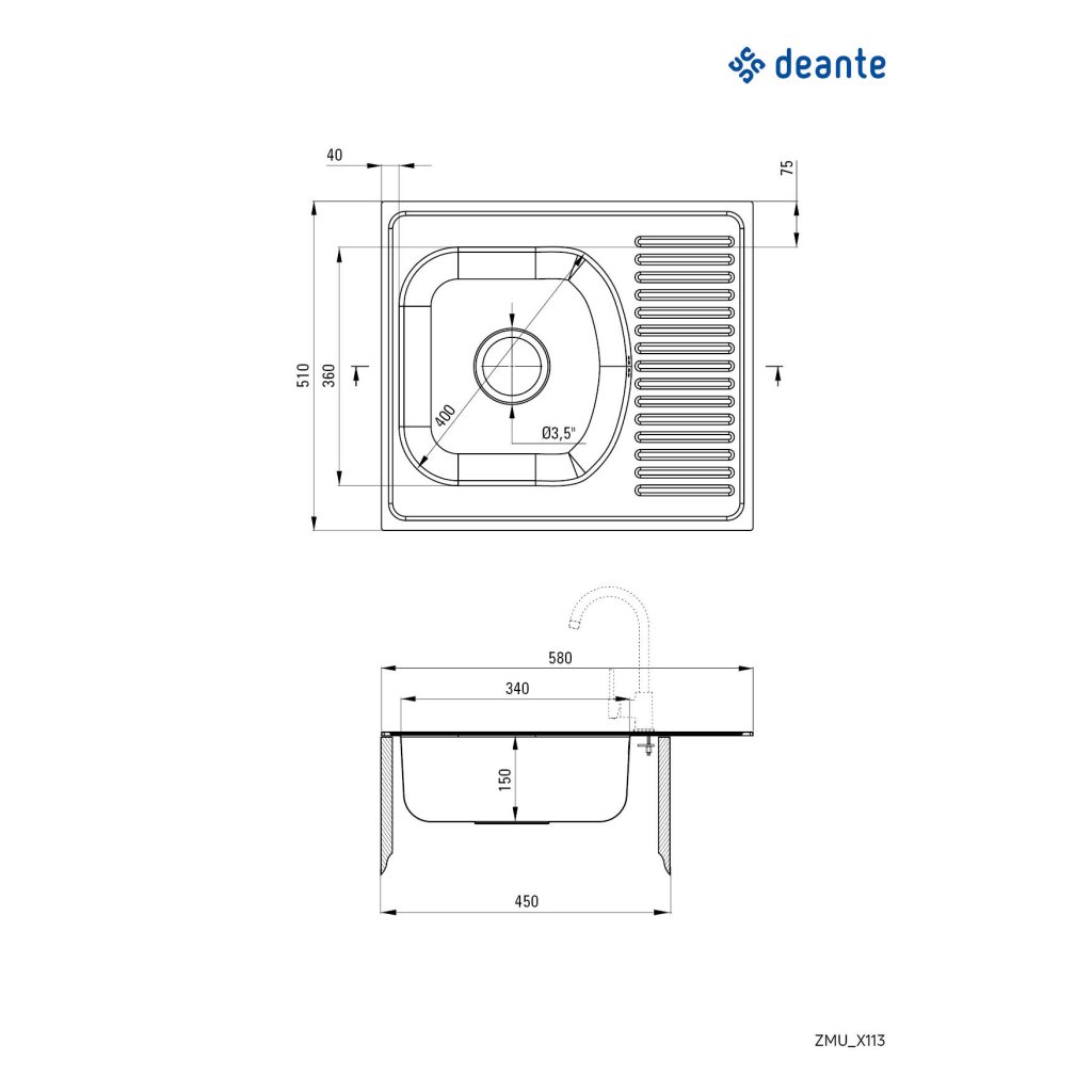 Deante Techno rozsdamentes mosogató 58 x 51 cm, 1 kamrás, mintás dekor, ZMU_3113