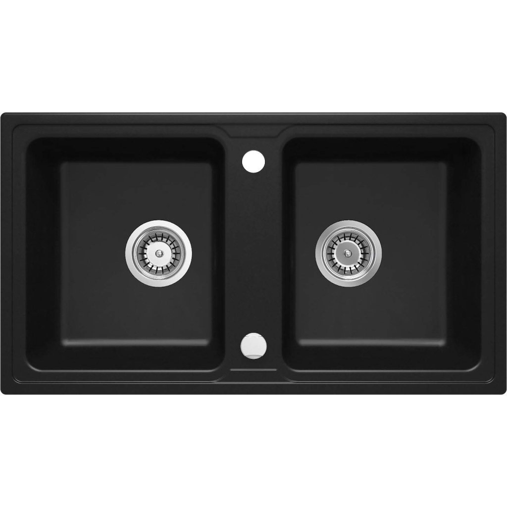 Deante Zorba, gránit mosogató 780x435x180 mm B/O, 3,5" + helytakarékos szifon, 2 kamrás, fekete, ZQZ_N203