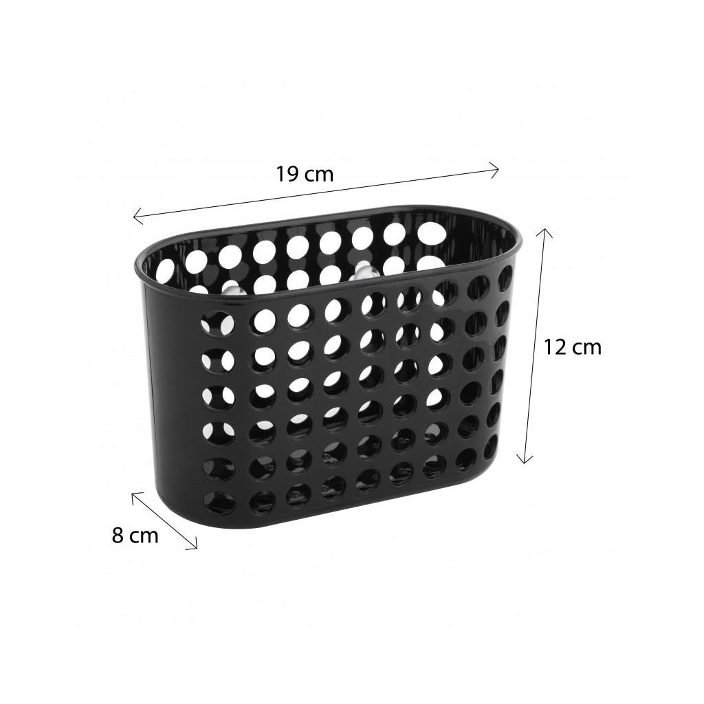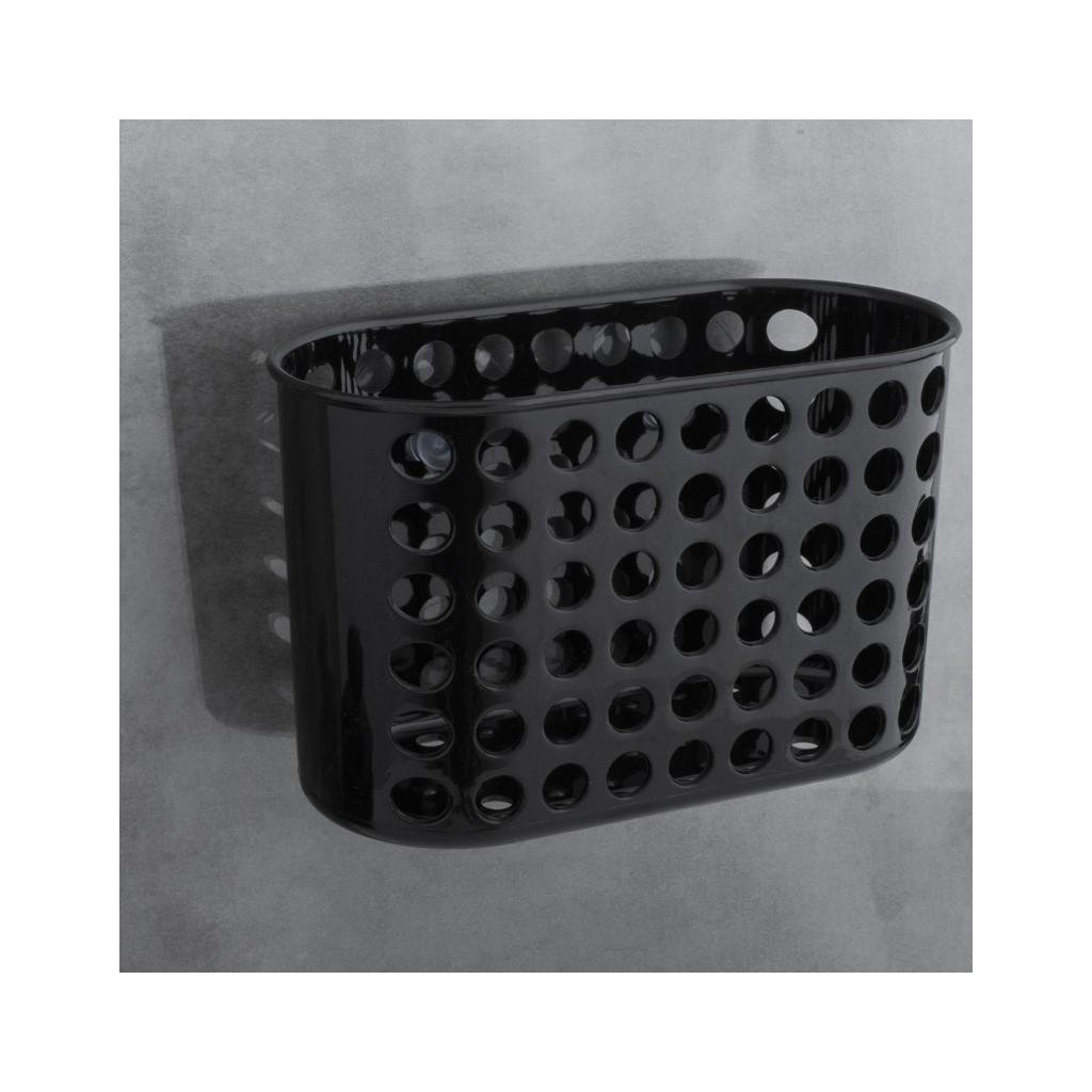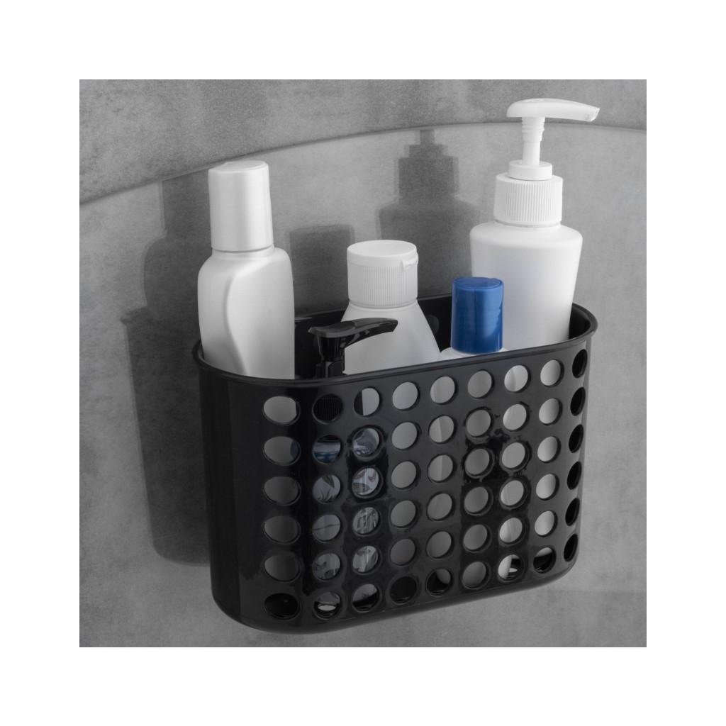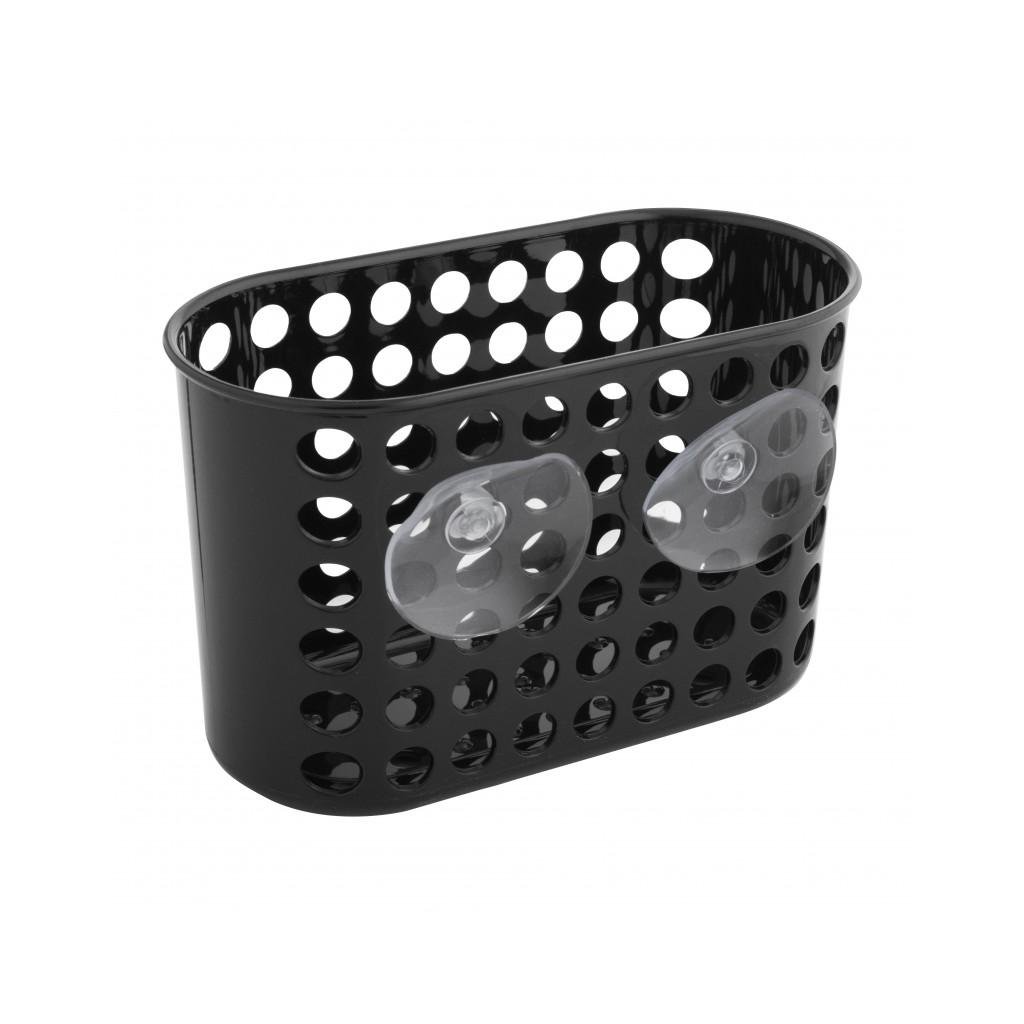 Praktikus fürdőszobai kosár fekete műanyagból, így ideális magas páratartalmú helyekre. Két szilikon tapadókorongra rögzítve. Ideális zuhanykabinhoz kis kiegészítők számára.