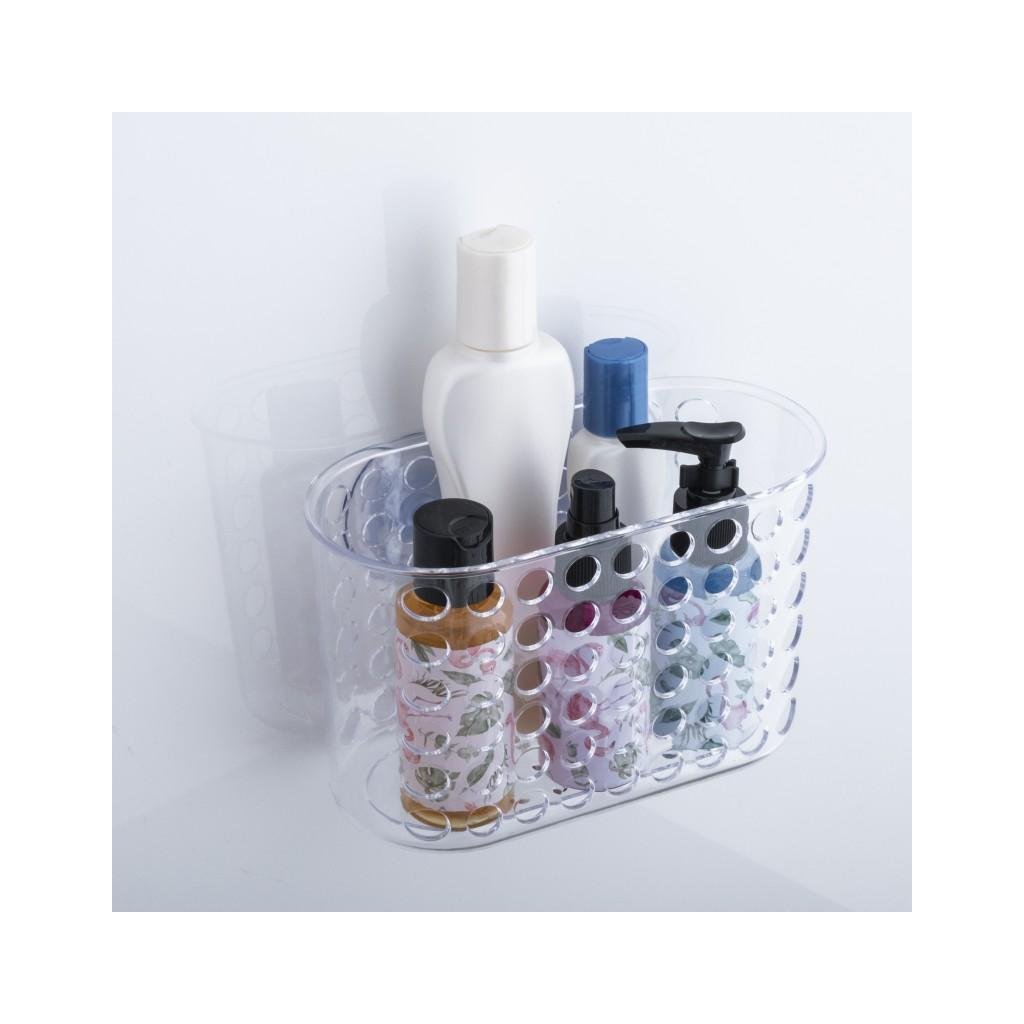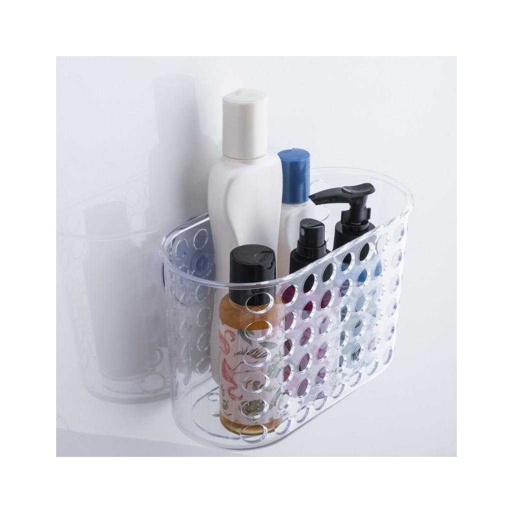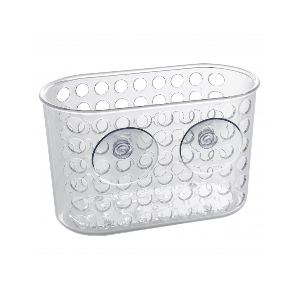 Praktikus fürdőszobai kosár átlátszó műanyagból, így ideális magas páratartalmú helyekre. Két szilikon tapadókorongra rögzítve. Ideális zuhanykabinhoz kis kiegészítők számára.
