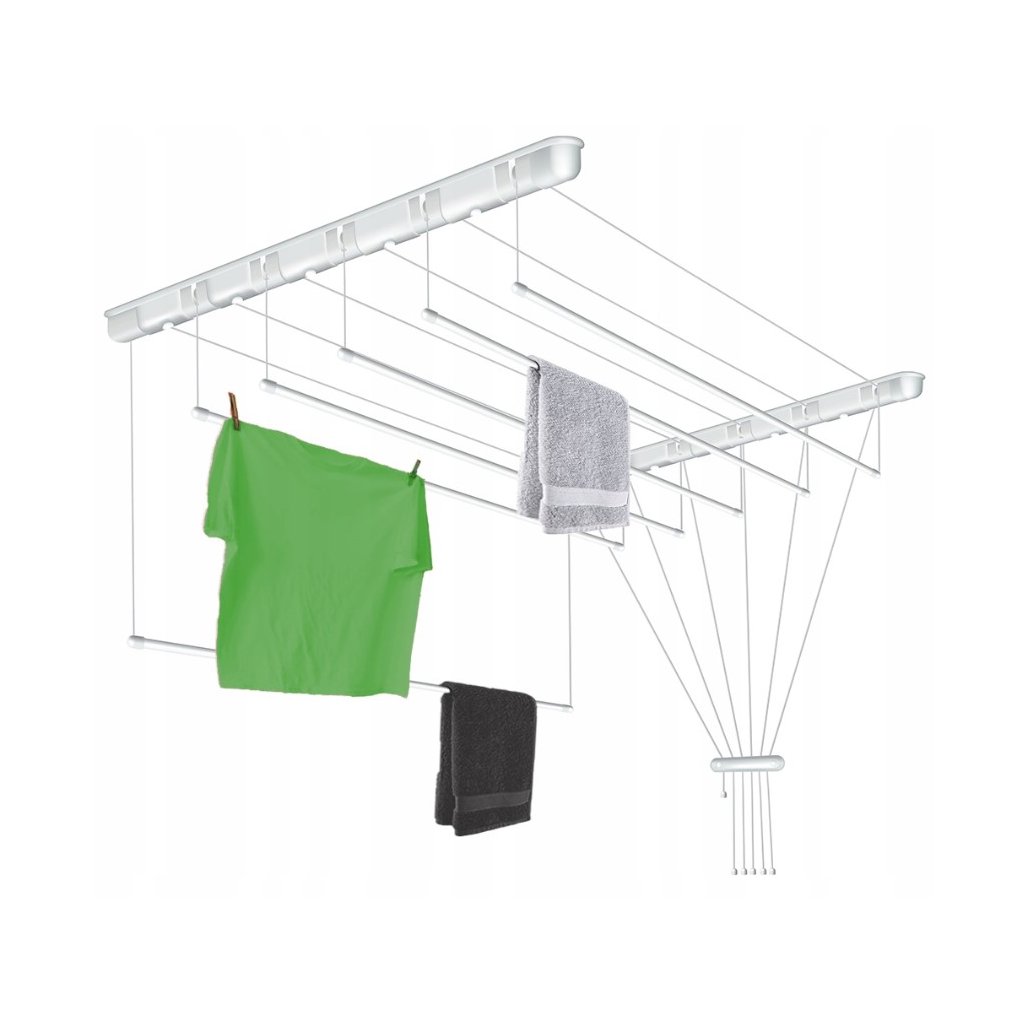Függesztett ruhaakasztót keresel, amivel sok helyet takaríthatsz meg? Bel- és kültéren is működő termék? Tekintse meg mennyezeti 6 soros ruhaszárítónkat. Mennyezeti szárítónkkal olyan helyet alakíthat ki, ahol száríthatja a ruhaneműt anélkül, hogy túl sok helyet foglalna. Ez a termék legfeljebb 3 méter magas helyiségbe telepíthető. Alkalmas ruhaneműk beltéri és kültéri szárítására. Kiváló időjárás- és nedvességállósággal rendelkezik, így nem kell tartania a korróziótól.