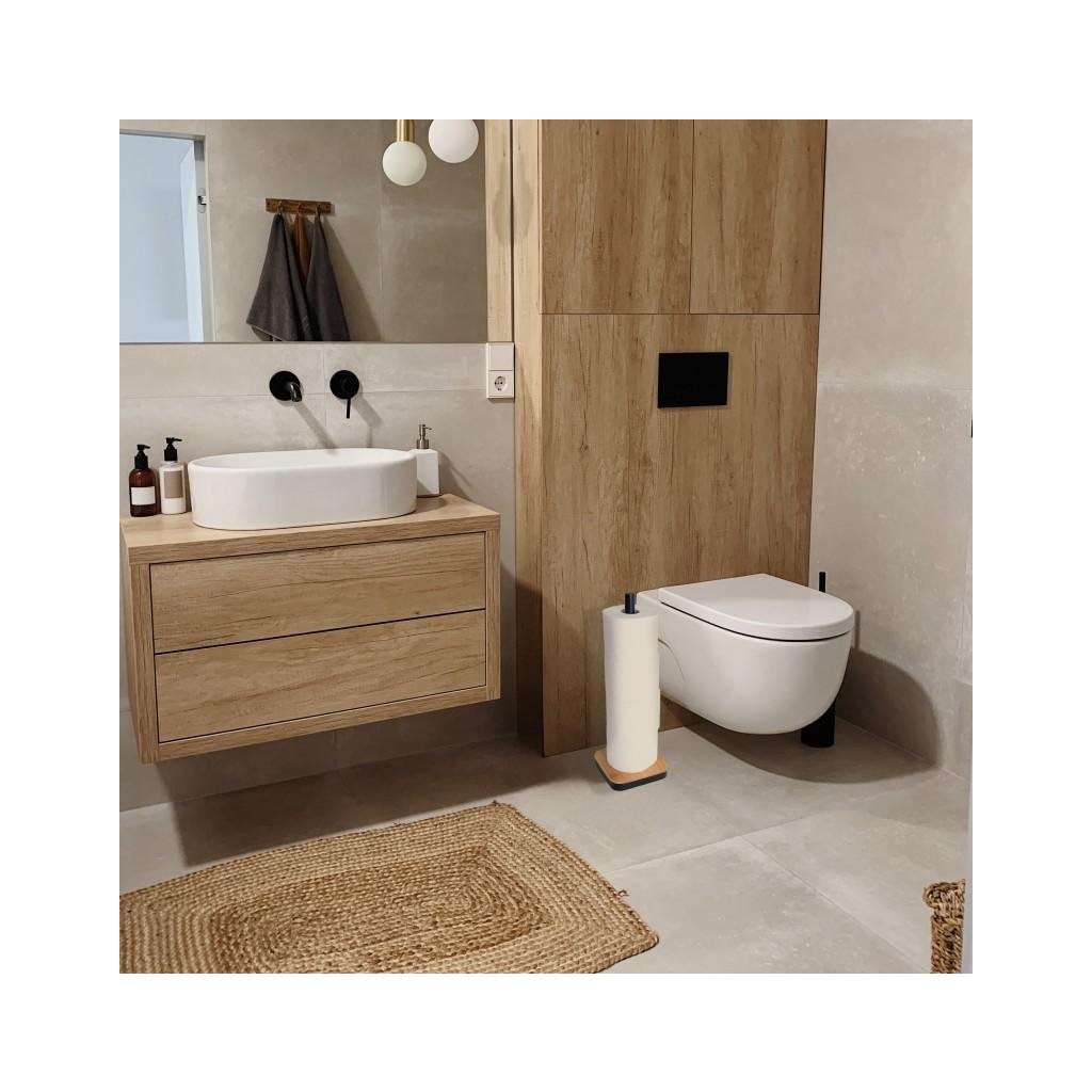 Természetes bambuszfából készült WC-papír adagoló. A tartóba akár 4 papírtekercs is belefér. A széles, fekete acél vázzal bevont alap kiváló stabilitást biztosít.
