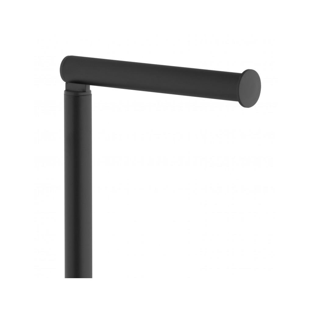 Fürdőszoba állvány tartalék WC-papír tárolására papírtartóval együtt. Kiváló minőségű acélból, fekete színben. Az állvány összesen legfeljebb 5 papírtekercs tárolására alkalmas. Az alap vastag és stabil, ami megakadályozza az állvány felborulását. Alul csúszásgátló betéttel van ellátva.