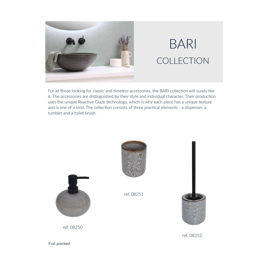 A Bari kollekció ecsetcsészéjét stílus és egyéni karakter jellemzi. Az egyedi Reactive Glaze technológia alkalmazása biztosítja, hogy minden darab egyedi legyen. A finom textúra- és színbeli különbségek biztosan tetszeni fognak az egyedi tárgyak szerelmeseinek.