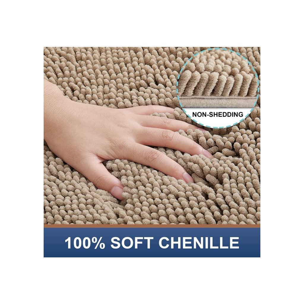 - ☁ PUHA ÉS KÉNYELMES: A fürdőszobaszőnyegek prémium minőségű, vastag és puha, bolyhos zseníliából készültek, egyedi zsenília rögzítési technikával, vastagabbak és jobban kidolgozottak, mint a legtöbb más márka. A 100%-ban puha zsenília kiváló kényelmet biztosít lépéskor.
