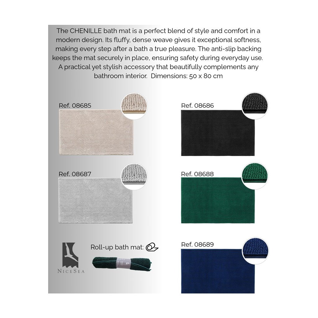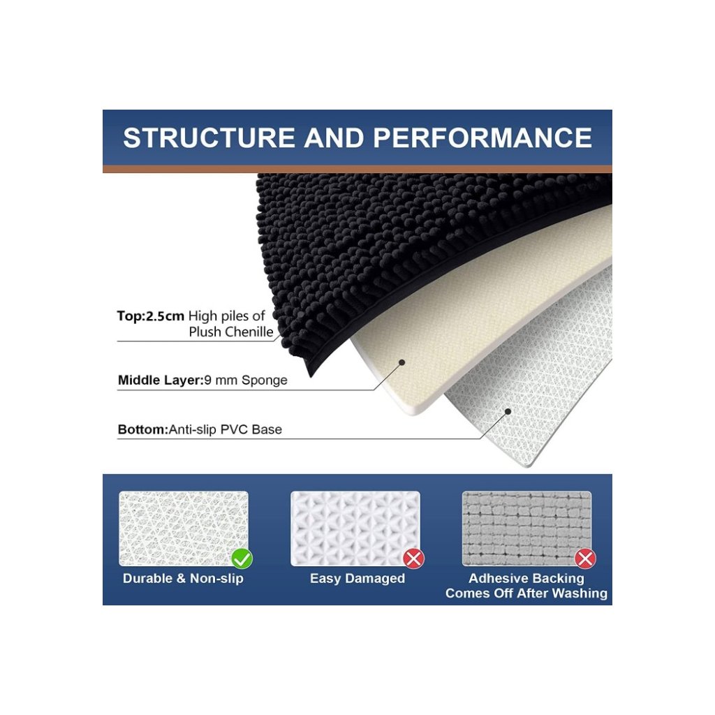 - ☁ PUHA ÉS KÉNYELMES: A fürdőszobaszőnyegek prémium minőségű, vastag és puha, bolyhos zseníliából készültek, egyedi zsenília rögzítési technikával, vastagabbak és jobban kidolgozottak, mint a legtöbb más márka. A 100%-ban puha zsenília kiváló kényelmet biztosít lépéskor.
