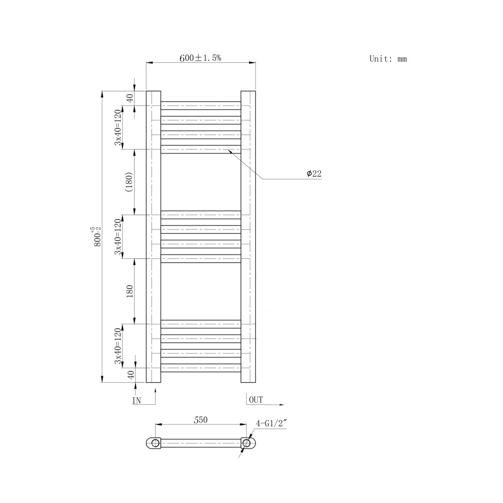 Erga Basic, fűtőelem 800x600 mm, 370 W, fekete, ERG-LAV-BASIC-8060-BK